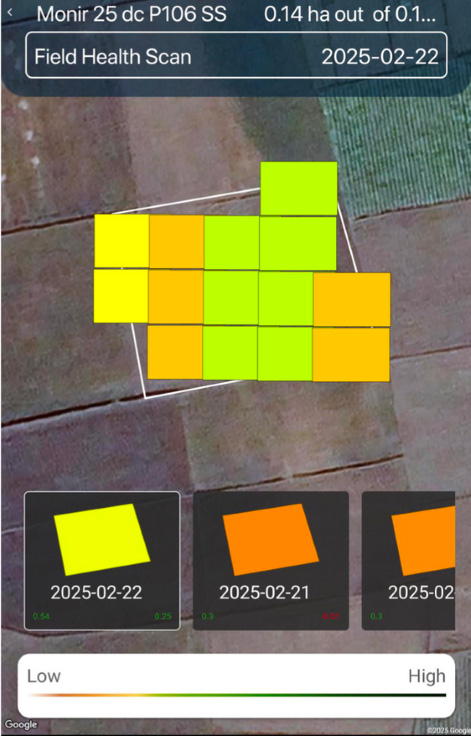 • AI & Analytics: Uses AI-powered algorithms to assess crop health, detect risks, and predict yields.